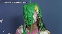 (She trips into cakes, slips and "accidentally" pies herself, and