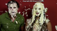 One of our most adorable and down-to-earth models in recent years returns for a second SlapstickStuff experience! Julie is absolutely charming as the long-suffering kids' show host who suffers tons of messy indignities in Scene One's "Messy Mother Goose," then she tests her "pie knowledge" in the loosely-scripted Scene Two. If you like excellent acting, perfect reactions, and plenty of cleavage (ahem), Julie's your girl!!
