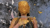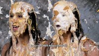 And then Scene Two finds Natalia back for more fun humiliation as she appears on the world's worst gameshow, It's Not Fair! A series of rigged contests finally culminates in "Take The Cake," as Natalia keeps missing incredible specific cake-related questions and finds her whole head buried under the mess of eight cakes in the face! (Yes, that's a single-scene record.) Incredible "angry" acting from Natalia, plus excellent leg/foot shots throughout... and even a few pies to break up the cake onslaught! But Natalia really came through with the final "head dunking in glop" game... as she basically kept covering herself in that sticky mess for ten minutes to give us an amazing (and unexpected) finale. That's why she's a legend! The final edit has all the bells & whistles (game-show backgrounds, sound FX, dumb music) while the unedited footage is just blue screen and Natalia being her usual amazing, down-for-anything self!