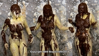 After far too much time away, our resident Sarcastic Model Jasmine returns... And she hasn't missed a beat! If anything, she was even more eager to step back into character and get super messy, and her latest role--a haughty rich woman who's both unimpressed by the Poison Pen special and wants more of it--might be her best yet. (Jasmine certainly agreed, as she asked to see the final edit of this one in particular... On camera, no less!) This might also be her sexiest role ever, from the decision to wear that dress minus underwear (um, just see pics below), to just going full nude halfway through for her first time ever. And yet, she remains the same ol' playful Jasmine as ever, dropping out of character in between lines to nibble on pie crust or throw up Star Trek knowledge. A nerdy hot girl who loves getting pied (17 times) and caked (5 times) and slimed (with both chocolate and the special Man & Wife green slime recipe)? Nope, we didn't make her up... This is really Jasmine, in her longest scene yet. Enjoy!